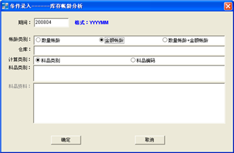 具體操作:進(jìn)入“庫存帳齡分析”文件柜(見圖49),點擊菜單項“功能/計算”,或點擊相應(yīng)圖標(biāo),進(jìn)入如圖50的條件窗口,在圖中輸入條件后,點擊“確定”,系統(tǒng)會自動計算